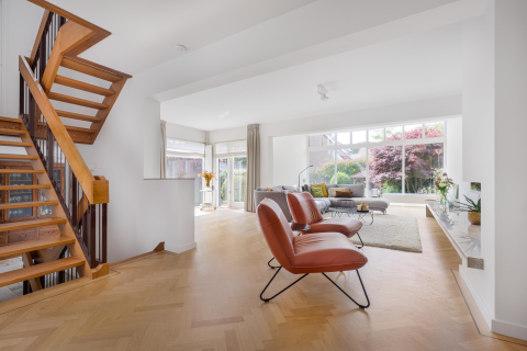 Indeling: entree, hal, royale woonkamer (ca. 7.80x3.31m.) met moderne open keuken met inbouwapparatuur,